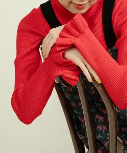 CHILD WOMAN もちもち袖口フリル アイレットリブタートル